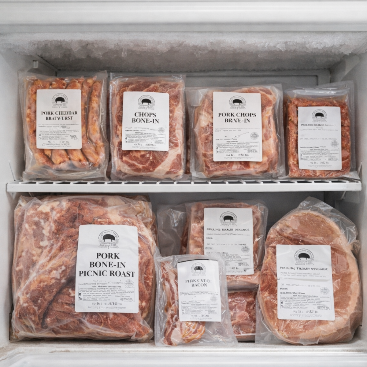 Custom cuts: You work directly with the processor (and we help guide you) so your freezer is filled with the types of pork your family actually eats.
