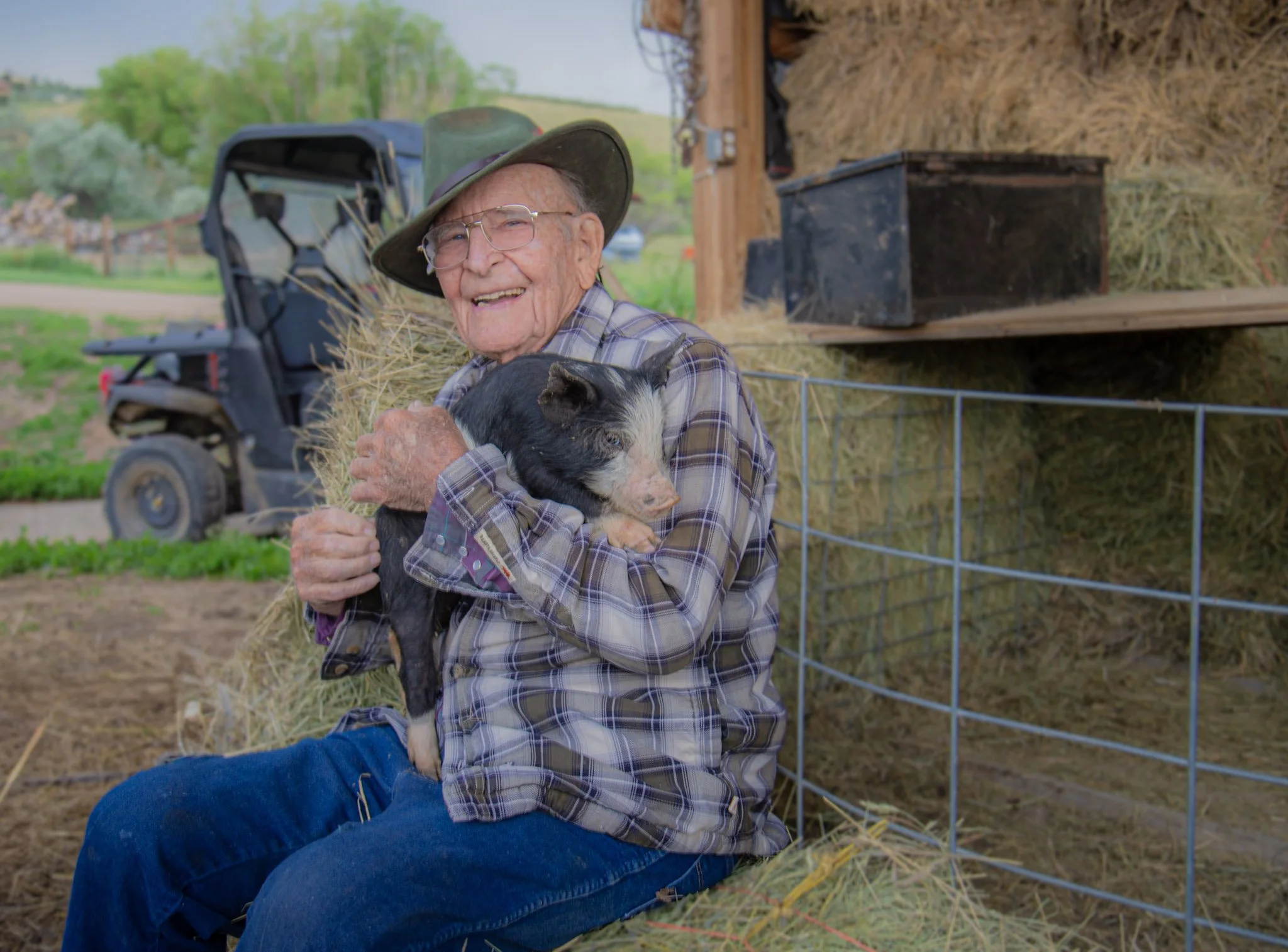 Meet Grandpa Alvin, the cherished soul of the farm at 95 years young! You'll often spot him out in the fields, working tirelessly to cut and bale hay. With a lifetime of stories and invaluable experience, his rough hands are always ready to tackle quick repairs, whether it’s fixing a fence or mending tools.